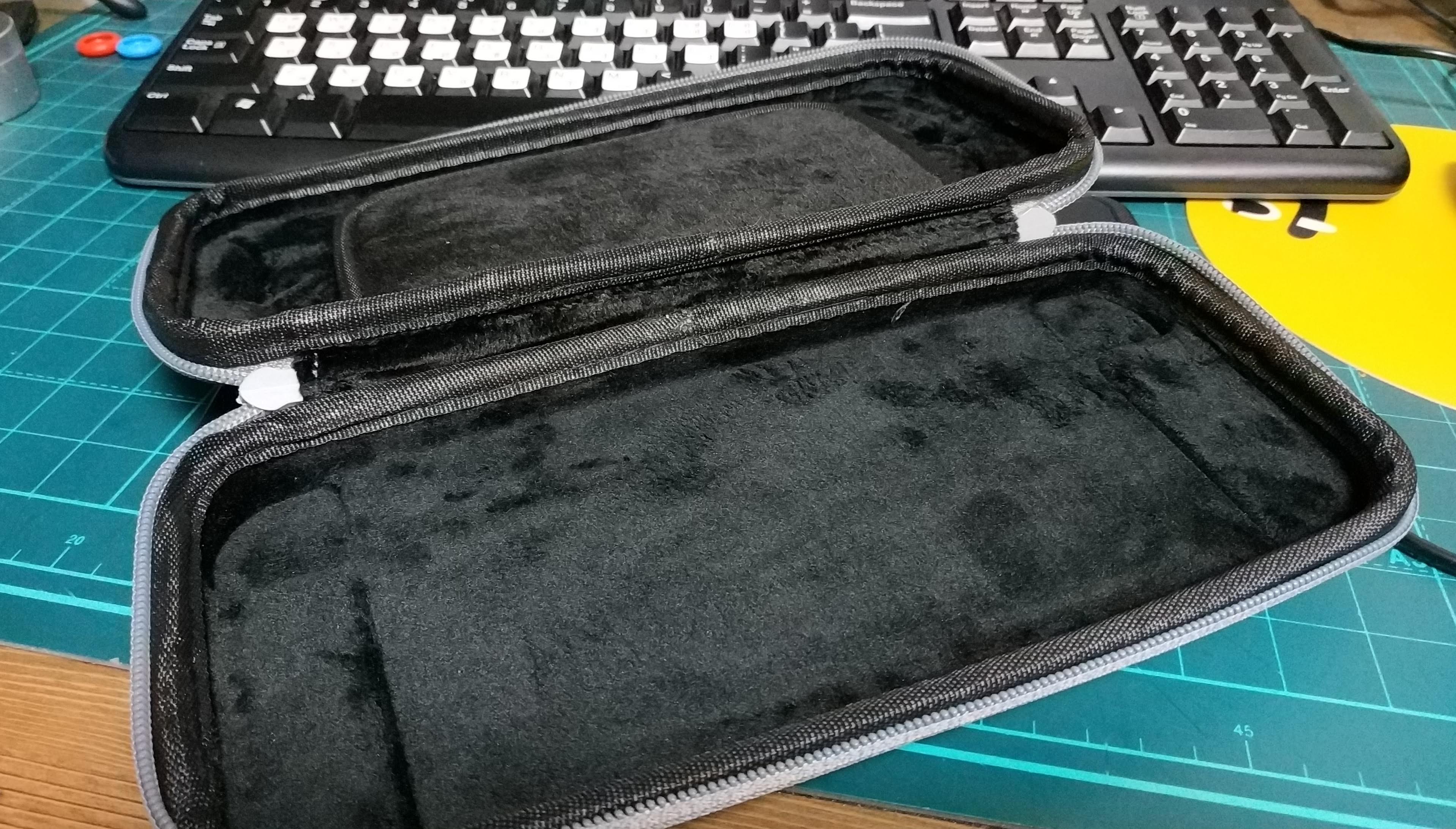 내부. 아주 부드러운 재질, 아마 극세사? 스위치를 그대로 집어 넣어도 흠집 날 걱정은 안 해도 될 듯.